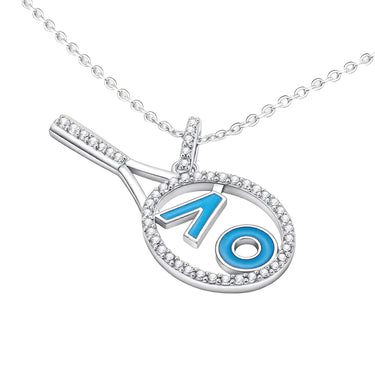 Make a powerful style statement on and off the court with this Single Tennis Racket Pendant Necklace. This standout piece showcases a finely crafted tennis racket pendant, accented with a vibrant blue enamel "AO" monogram for a personalized touch. Unlike delicate tennis jewelry, this necklace features a robust and stylish link chain that adds an edge to your look. It's the perfect blend of athletic spirit and urban chic, celebrating your love for the game with confidence and style. An ideal gift for the fierce and fashionable player.