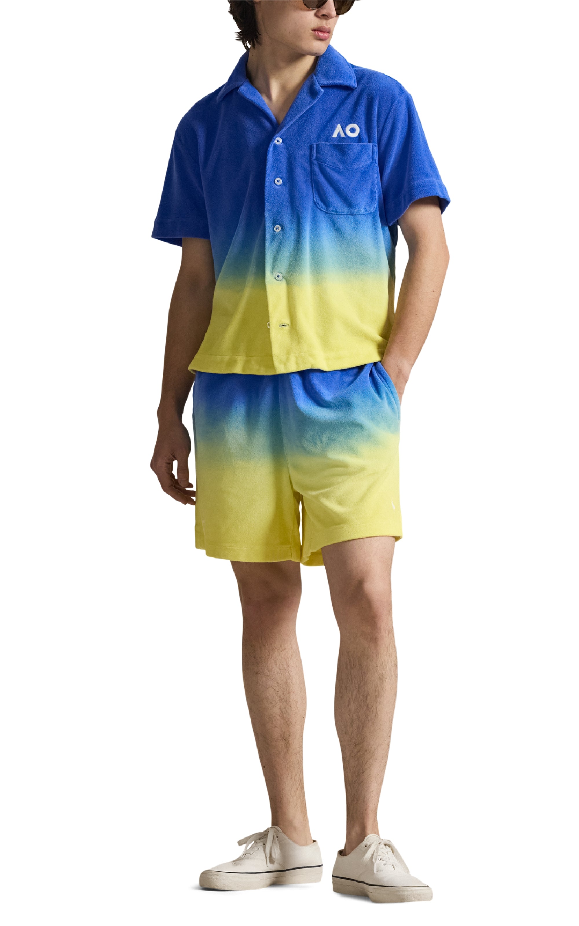 Part of our commemorative Australian Open capsule collection for 2026, these cotton-blend terry shorts are uniquely dyed to achieve an ombré effect. They’re embroidered with the official Australian Open logo and Ralph Lauren’s signature Pony, representing our relationship as the tournament’s Official Outfitter.