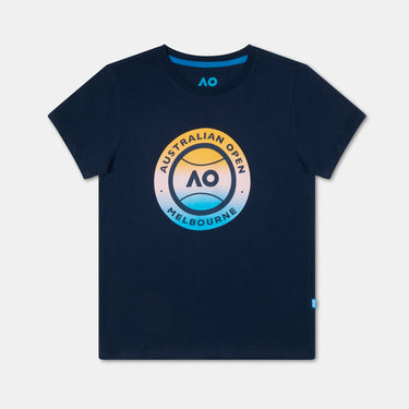 Let your little one score big this summer with this stylish navy tee! Featuring the iconic AO logo inside a fun tennis ball graphic, this design offers a timeless tribute to the Australian Open. The gradient colour scheme from blue to orange adds a modern touch to a classic look. Made from sustainable, organic cotton, this t-shirt is both comfortable and breathable, perfect for keeping your child cool during warm days.