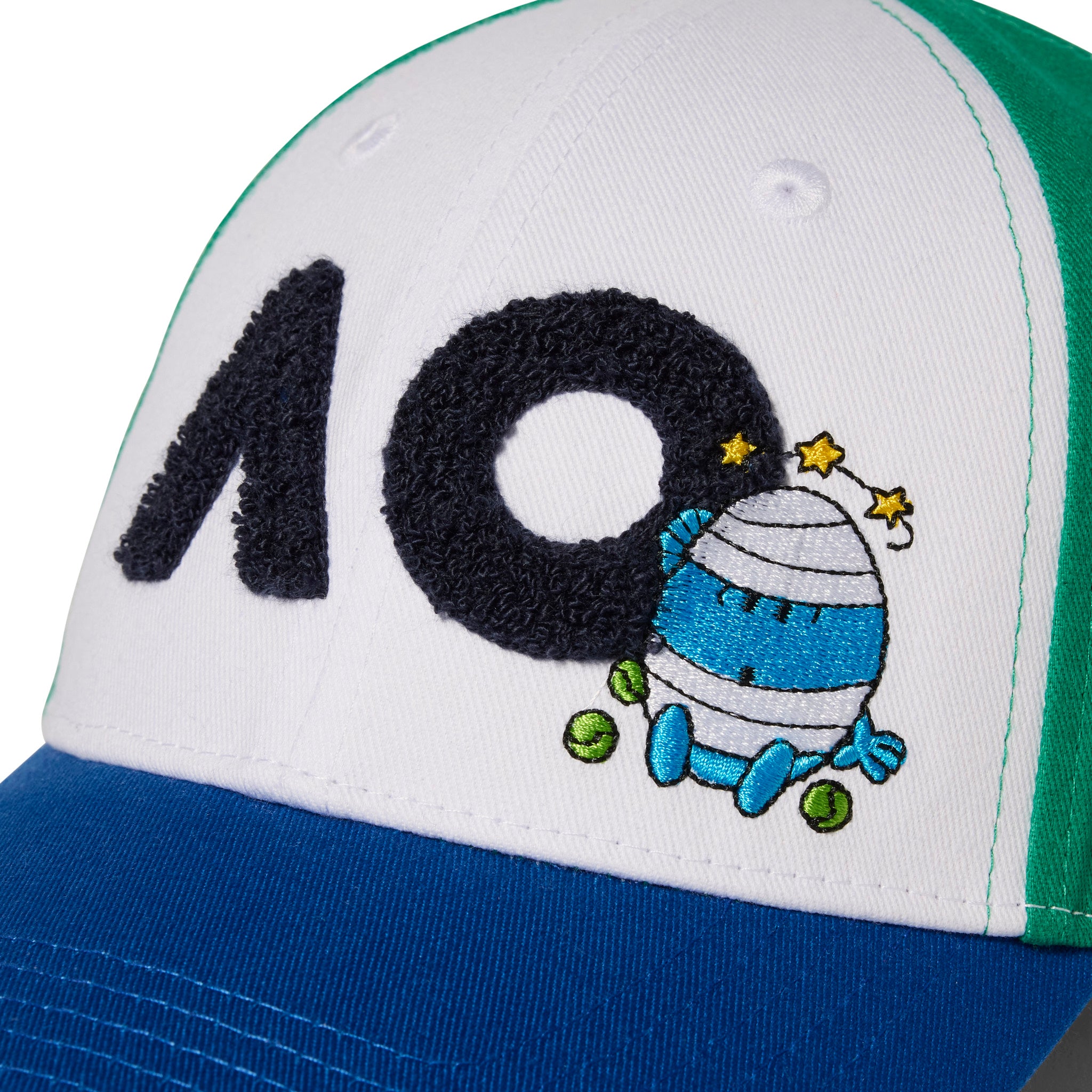 The iconic AO logo reimagined. This structured cap transforms the Australian Open branding with Mr. Strong and Little Miss Sunshine bringing their signature style. Crafted from organic cotton twill, it features embroidered character details at the front. The classic six-panel construction delivers comfort and style for courtside or everyday wear.