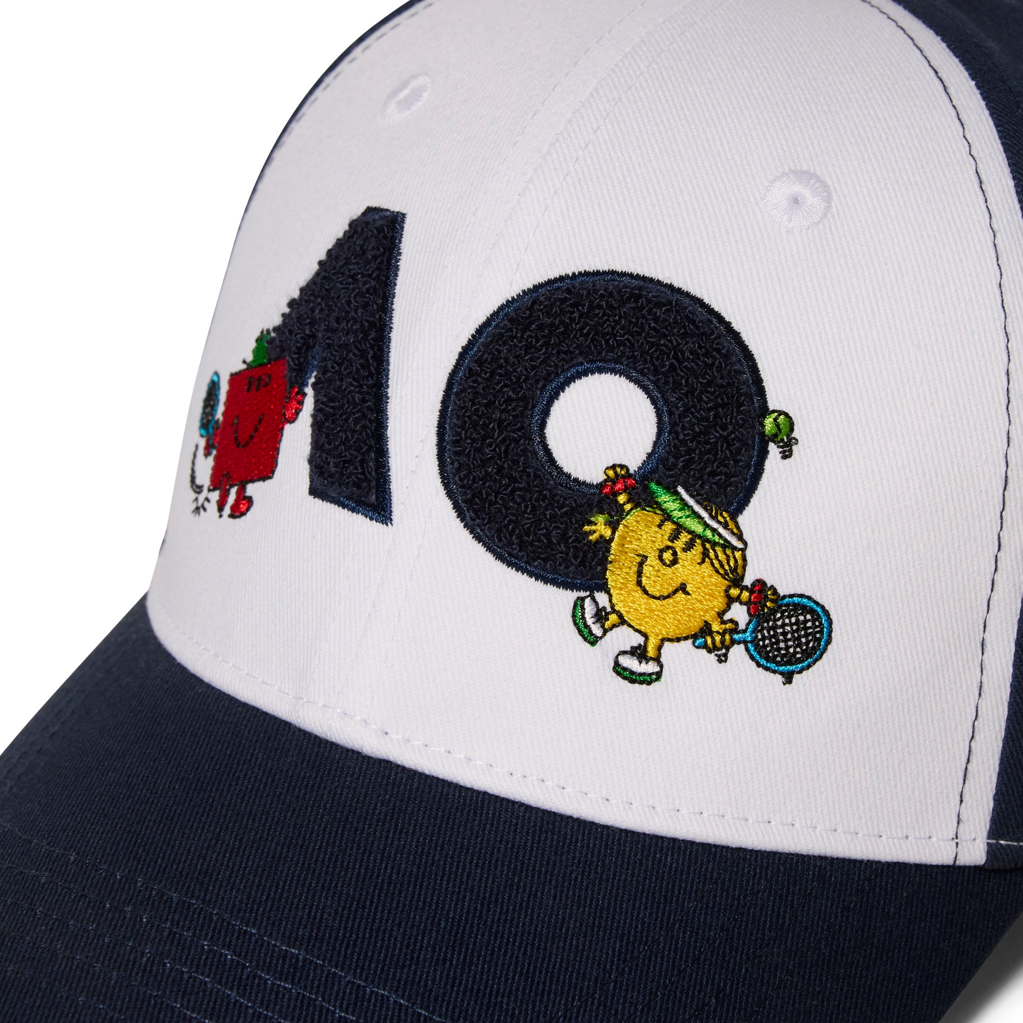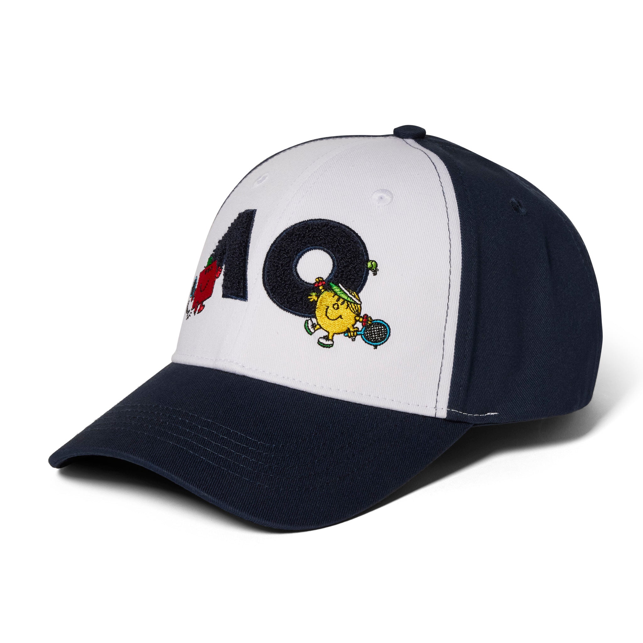 The iconic AO logo reimagined. This structured cap transforms the Australian Open branding with Mr. Strong and Little Miss Sunshine bringing their signature style. Crafted from organic cotton twill, it features embroidered character details at the front. The classic six-panel construction delivers comfort and style for courtside or everyday wear.