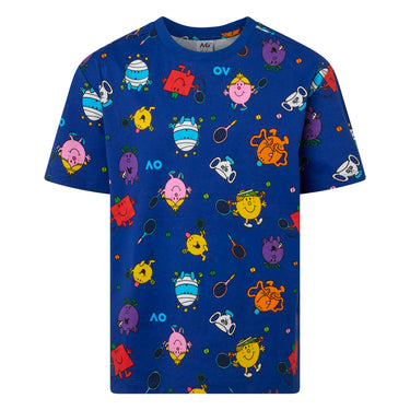 This vibrant all-over print tee turns the beloved Mr Men and Little Miss gang into the ultimate Australian Open pattern. Crafted from 100% Australian cotton jersey, it features a water-based character print covering the entire front. The comfortable fit makes it perfect for junior tennis fans and everyday adventures.